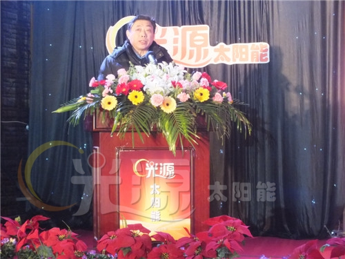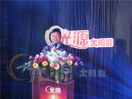 首先,12月6日上午9:30,光源年會(huì)隆重開(kāi)幕。在年會(huì)上,中國(guó)太陽(yáng)能熱利用產(chǎn)業(yè)聯(lián)盟副理事長(zhǎng)、中國(guó)太陽(yáng)能熱利用產(chǎn)業(yè)協(xié)會(huì)副理事長(zhǎng)、河北光源太陽(yáng)能科技有限公司董事長(zhǎng)李成彬致辭。他代表光源公司對(duì)各位領(lǐng)導(dǎo)、專(zhuān)家、經(jīng)銷(xiāo)商朋友的到來(lái)表示熱烈歡迎和衷心感謝,對(duì)光源2014年取得的成績(jī)和2015年發(fā)展方向進(jìn)行了總結(jié)和展望。李成彬指出,2014年是光源發(fā)展史上不平凡的一年,在國(guó)內(nèi)經(jīng)濟(jì)增速放緩的大背景下,太陽(yáng)能光熱行業(yè)也受到極大影響。但光源勇敢拼搏、堅(jiān)定信念,以市場(chǎng)為導(dǎo)向,以銷(xiāo)售為龍頭,產(chǎn)量雖然相比去年有所下滑,然而,我們依然對(duì)太陽(yáng)能光熱行業(yè)的發(fā)展前景充滿(mǎn)信心,相信太陽(yáng)能光熱的春天一定還會(huì)到來(lái)。行業(yè)領(lǐng)導(dǎo)羅振濤、霍志臣、張曉黎、賈鐵鷹、楊桂元先后講話(huà)。在講話(huà)中,領(lǐng)導(dǎo)們肯定了光源跨越發(fā)展、科技創(chuàng)新取得的喜人成績(jī),肯定了光源在全國(guó)同行業(yè)中的地位和作用,對(duì)光源未來(lái)發(fā)展提出了指導(dǎo)性意見(jiàn)。光源公司總經(jīng)理劉迎波在講話(huà)中詳細(xì)分析了光源公司面對(duì)的市場(chǎng)形勢(shì),他說(shuō),光源公司在今后的發(fā)展道路上要審時(shí)度勢(shì),及時(shí)調(diào)整經(jīng)營(yíng)戰(zhàn)略和營(yíng)銷(xiāo)政策,做精做細(xì)終端市場(chǎng),和廣大經(jīng)銷(xiāo)商一起,打造符合光源特點(diǎn)的企業(yè)發(fā)展之路。