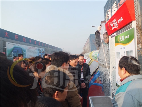 12月7日上午,光源公司邀請(qǐng)經(jīng)銷(xiāo)商朋友到廠(chǎng)區(qū)參觀(guān)并合影留念。光源公司在廠(chǎng)區(qū)的特定位置展示了光源的產(chǎn)品,尤其是新品的展示更安排了技術(shù)人員現(xiàn)場(chǎng)演示與講解,廣大經(jīng)銷(xiāo)商朋友對(duì)光源新品產(chǎn)生了濃厚的興趣,紛紛駐足光看,聆聽(tīng)講解。7日下午,光源太陽(yáng)能年會(huì)舉行訂貨會(huì),活動(dòng)現(xiàn)場(chǎng)氣氛熱烈,經(jīng)銷(xiāo)商朋友爭(zhēng)先恐后的簽訂購(gòu)貨協(xié)議,訂貨量與去年持平。