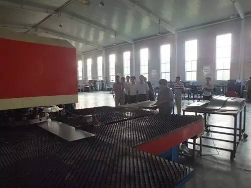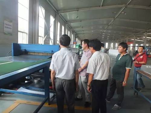 在參觀完太陽能真空集熱管制造車間后又到了太陽能工程設(shè)備總裝車間,先后參觀了全自動下料開平設(shè)備、轉(zhuǎn)塔式全自動數(shù)控沖床生產(chǎn)線、全自動外皮雙頭縮口滾花機(jī)、臥式反向積放發(fā)泡生產(chǎn)線、環(huán)戊烷聚氨酯高壓發(fā)泡機(jī)、全自動數(shù)控打包生產(chǎn)線以及壁掛太陽能生產(chǎn)線等等。