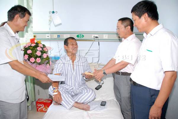 倡議書隨即引起了全體同事的高度關(guān)注,公司領(lǐng)導(dǎo)帶頭,廣大員工踴躍參與,紛紛主動捐款,全體員工用點(diǎn)滴仁愛之心,向達(dá)師傅傳遞了一份生命的熱度,譜寫了光源人互助互愛的贊歌。8月15日上午公司領(lǐng)導(dǎo)買來花籃、水果和募集到的近2萬元善款到醫(yī)院看望病中的達(dá)師傅,并鼓勵他用積極的心態(tài)戰(zhàn)勝病魔,早日康復(fù)!