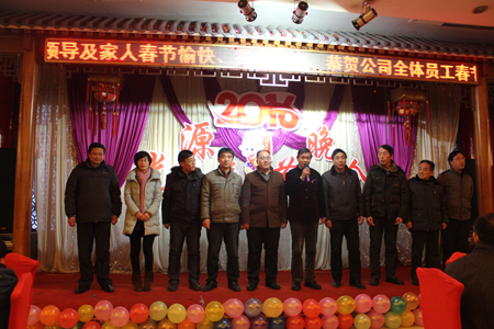 晚會開始前,董事長李成彬首先致辭。在致辭中,李成彬向全體員工恭賀新春,對2015年工作進(jìn)行了回顧,對2016年工作進(jìn)行了展望和描繪。接著,公司領(lǐng)導(dǎo)李成彬、劉迎波、邵東坤、李友民一起上臺向大家拜年。公司各部門經(jīng)理一起上臺給大家拜年。恭祝大家新年快樂,猴年大吉,闔家歡樂,萬事如意。