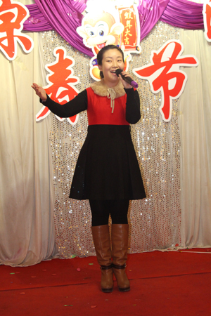 登臺表演的是真空管車間高合英,她給大家?guī)淼母枨恰稓g樂中國年》。本次晚會共有歌曲、戲劇、武術(shù)等19個節(jié)目一展風(fēng)采,演出中掌聲不斷,氣氛熱烈。叫好者不絕于耳,更有職工親友團(tuán)的節(jié)目演出令人振奮不已。充分顯示了光源一家親的熱烈氣氛。