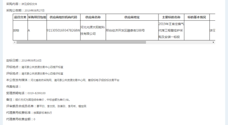 喜報頻傳,河北光源太陽能科技有限公司,在2019年09月16日,2019年王官莊鎮(zhèn)氣代煤工程壁掛爐采購及安裝項目的競標中,憑借過硬的產(chǎn)品質(zhì)量,扎實高效的工作作風,卓越的運作團隊和良好的企業(yè)信譽,以絕對的優(yōu)勢順利中標。